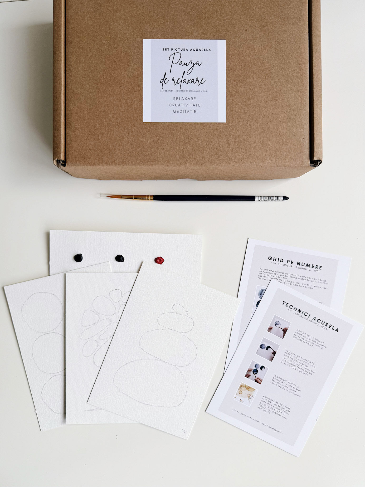 Am creat Setul de pictura Pauza de relaxare special pentru tine – un pachet de inceput conceput sa te ajute sa faci primii pasi in pictura in acuarela, folosind materiale profesionale.