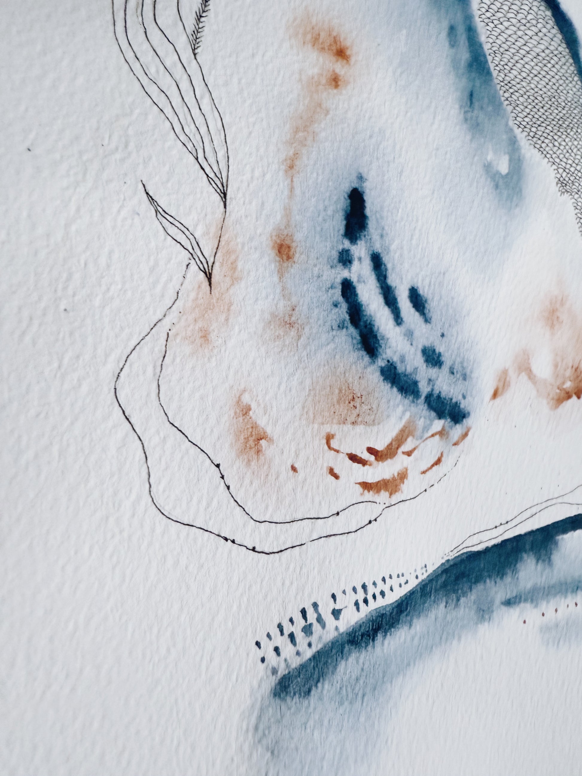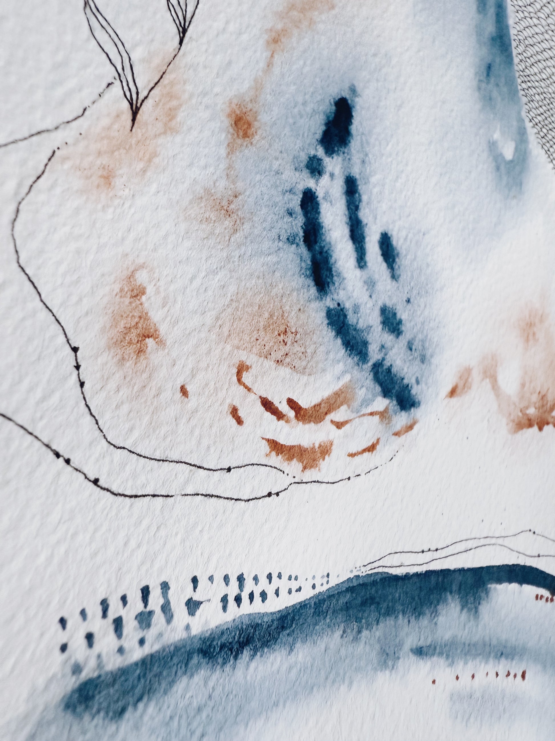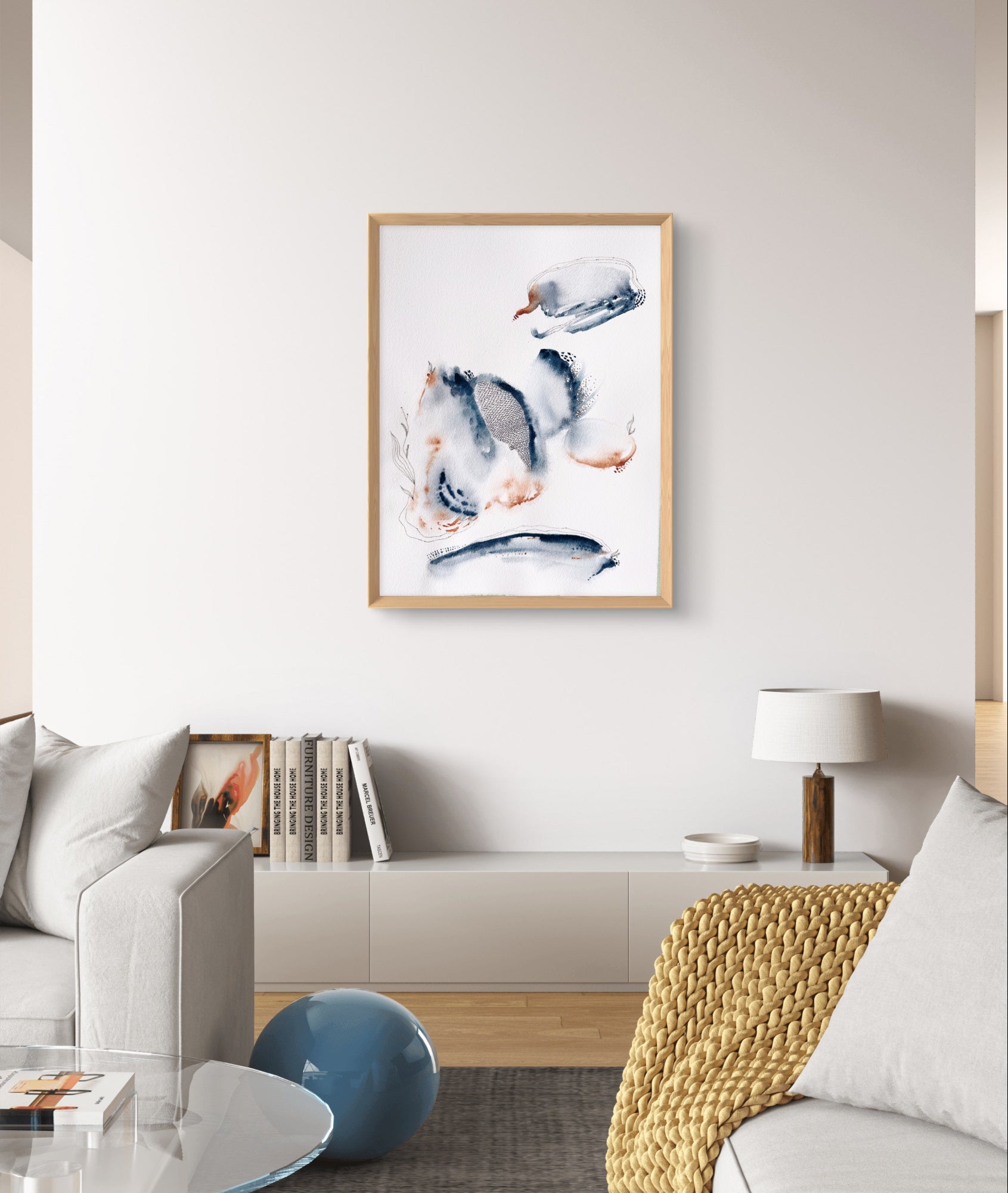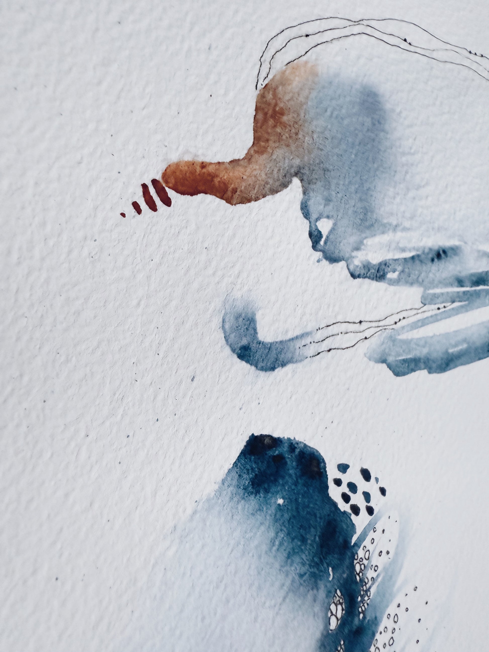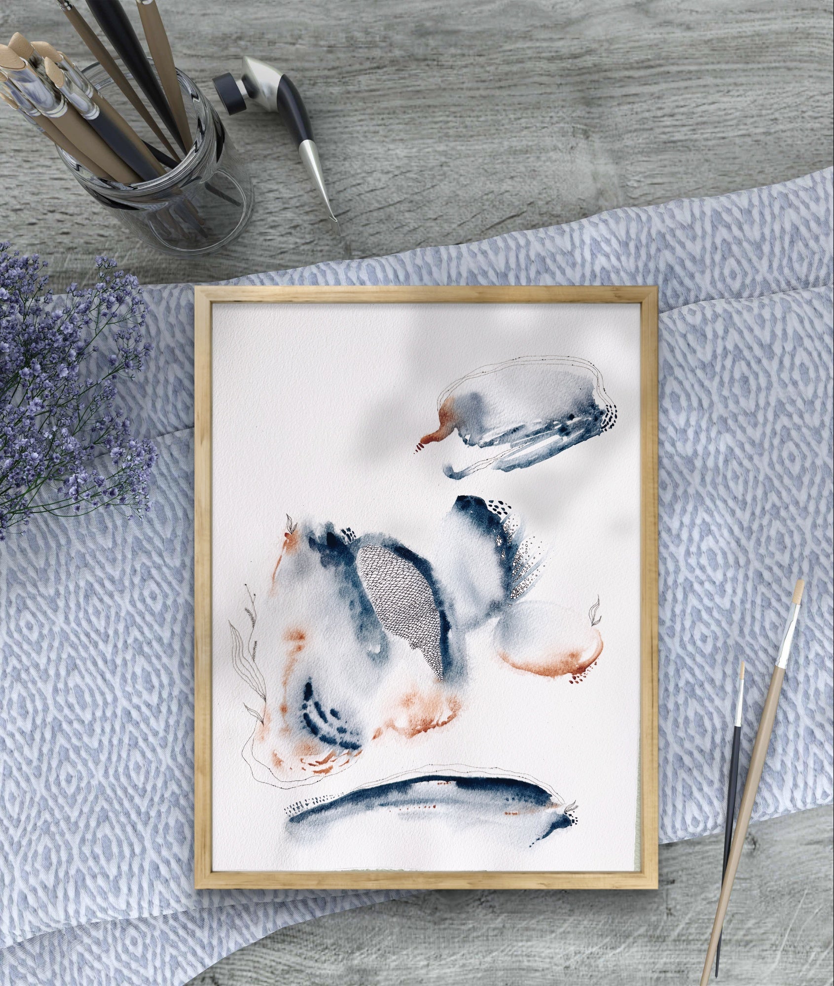 30x40 Original - Colectia Indigo Breathings 1 - Pictura în acuarela