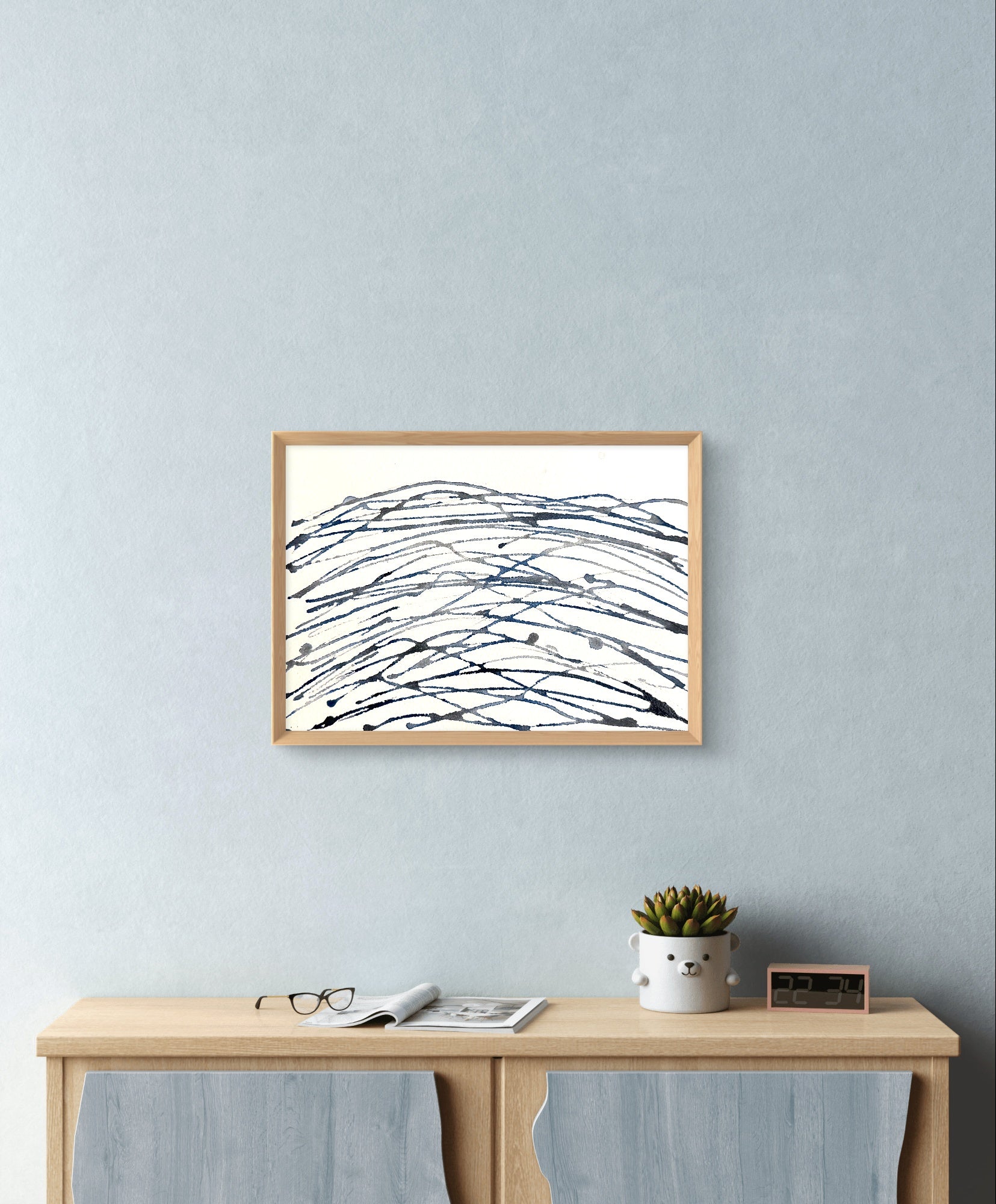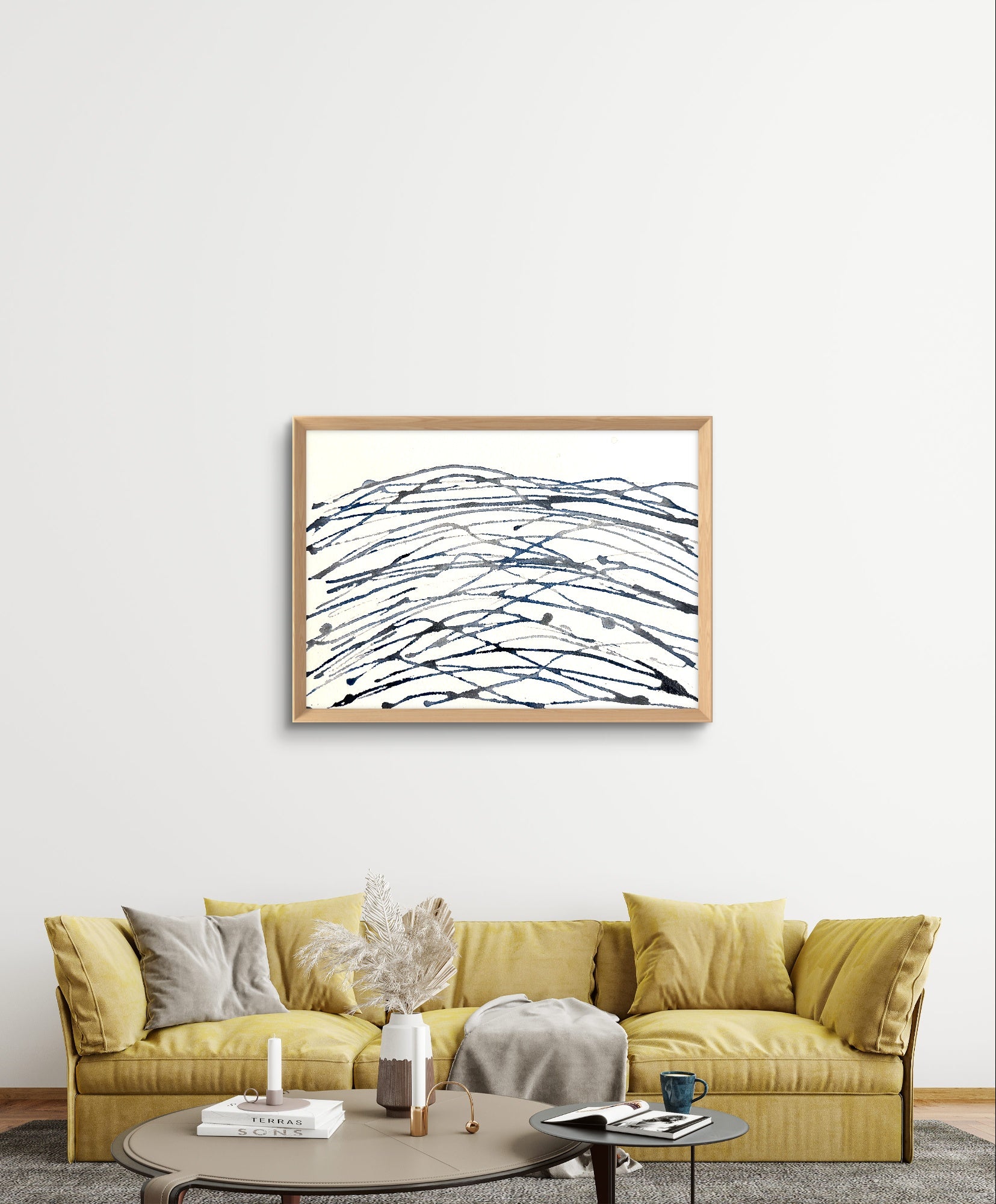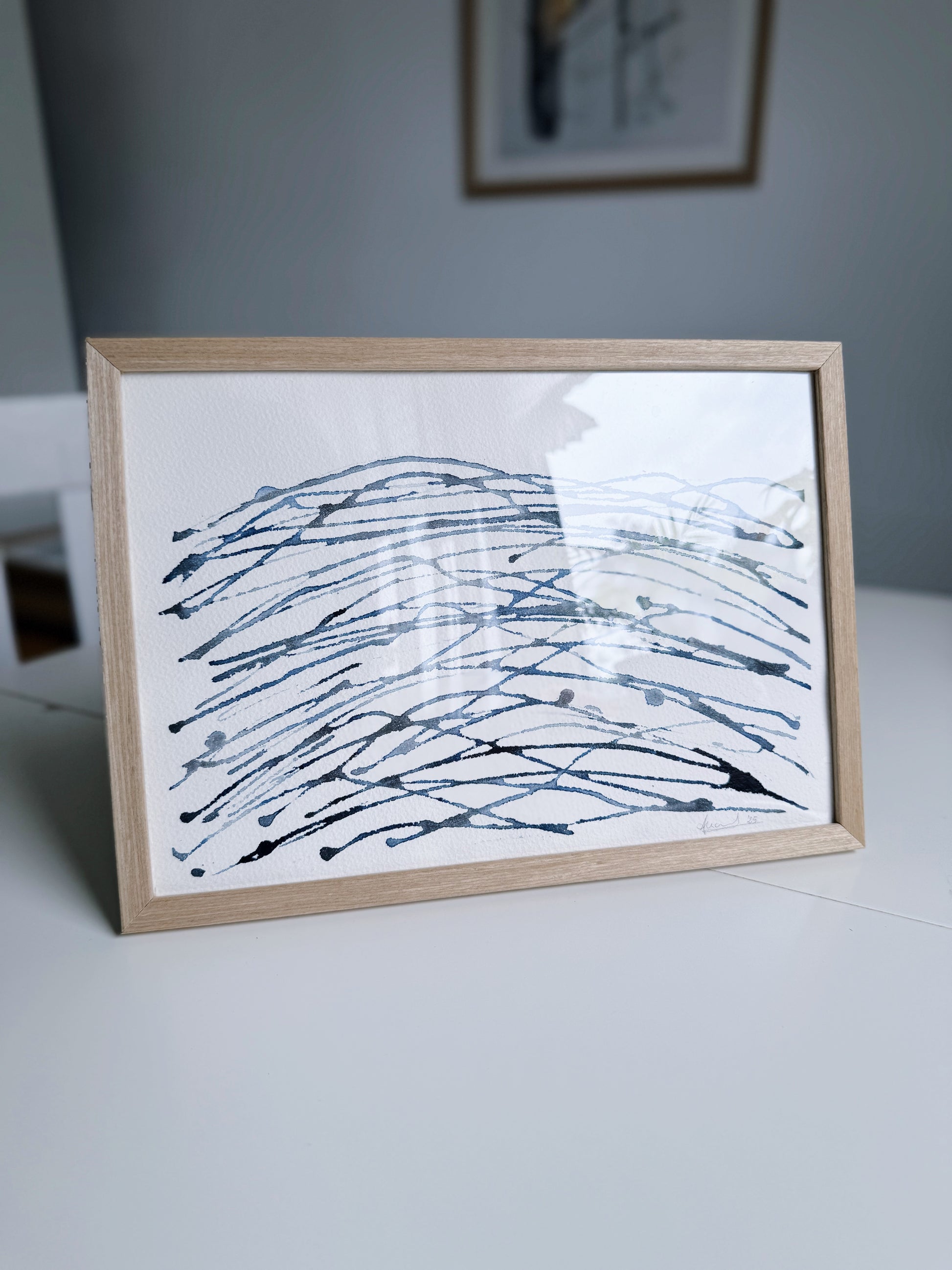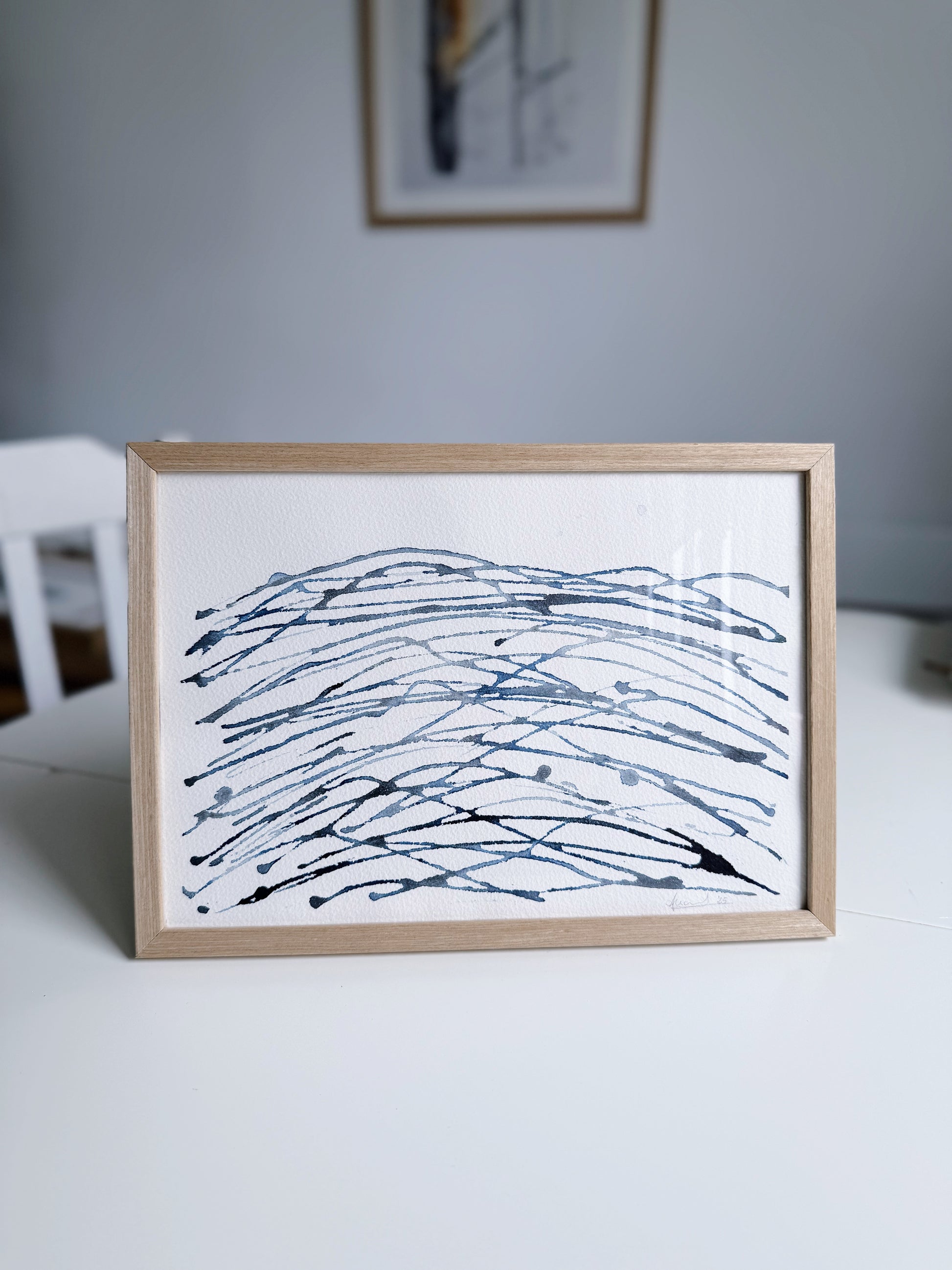Am folosit tonuri de indigo, albastru se verde și forme simple pentru a crea o atmosferă calmă - perfectă pentru casa ta. Fiecare pictură este realizată manual pe hârtie profesională de 300g.
