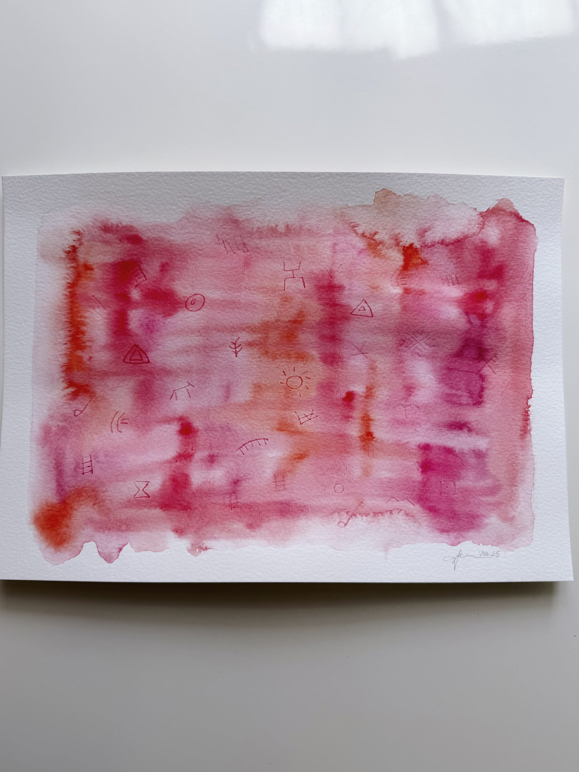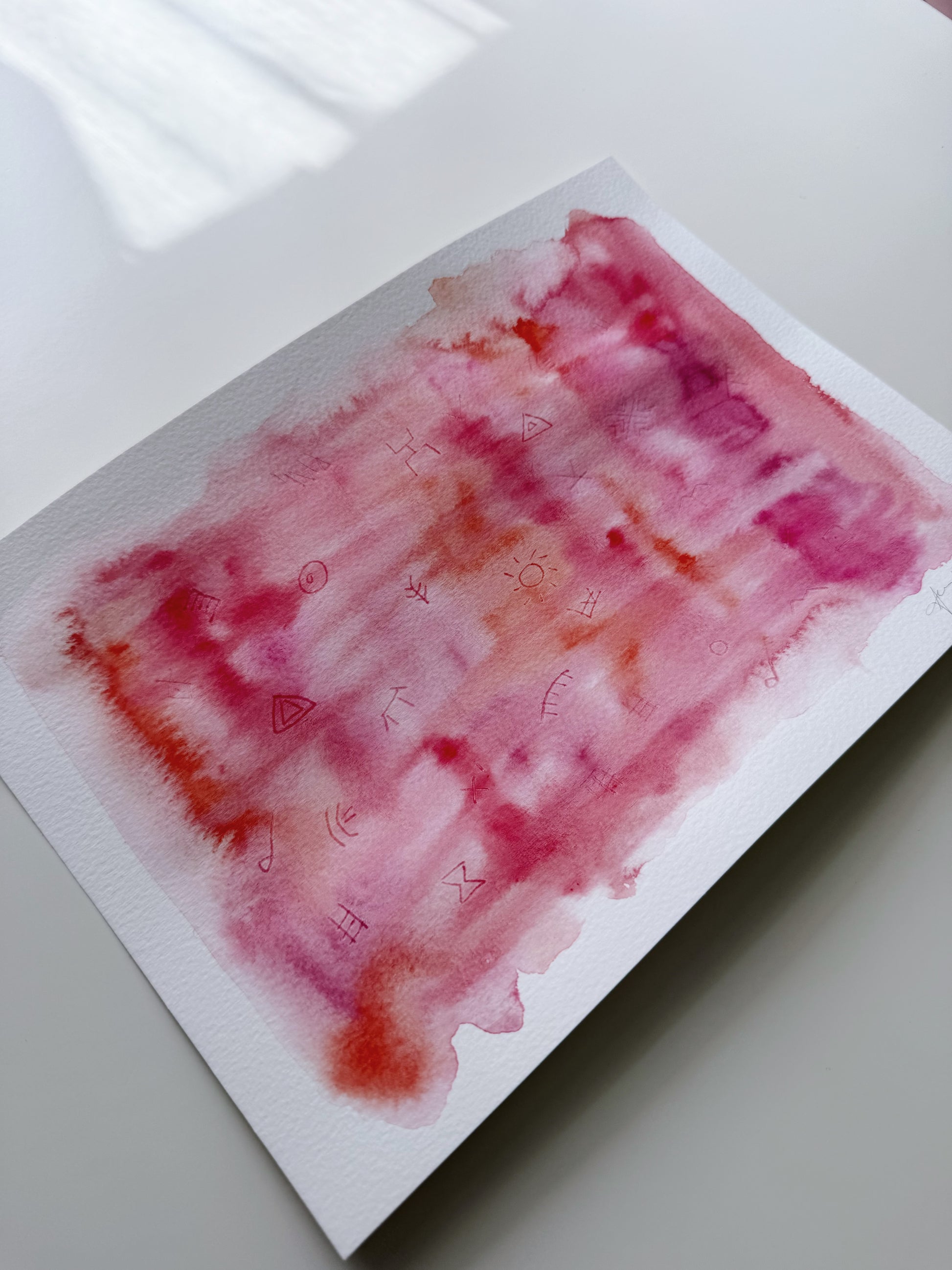 Pictată pe hârtie profesională de acuarelă groasă de 300g - suprafață cu granulație medie.