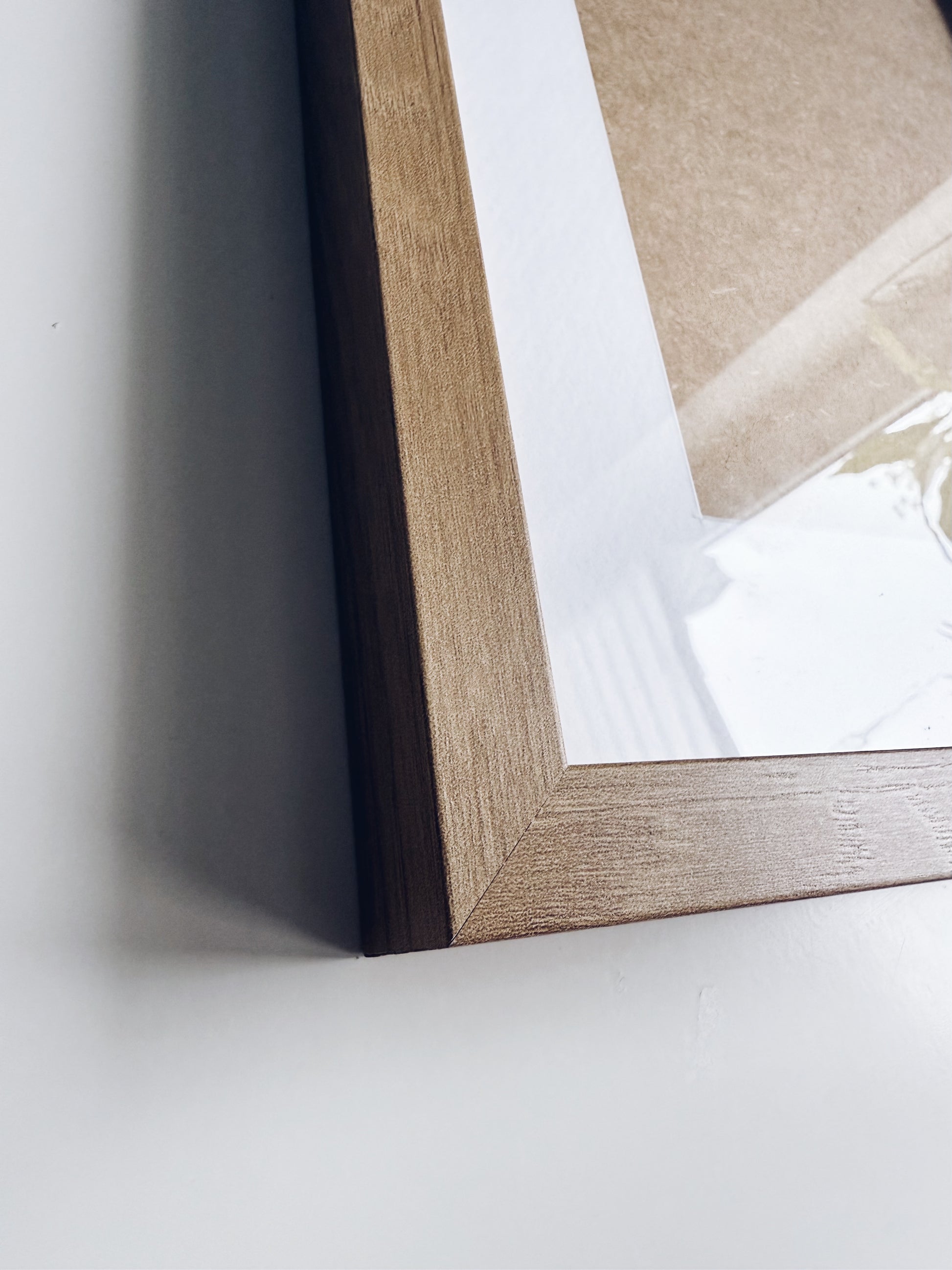 Ramă din MDF asemănătoare lemnului cu protecție din polistiren pe față și cu passpartout.
