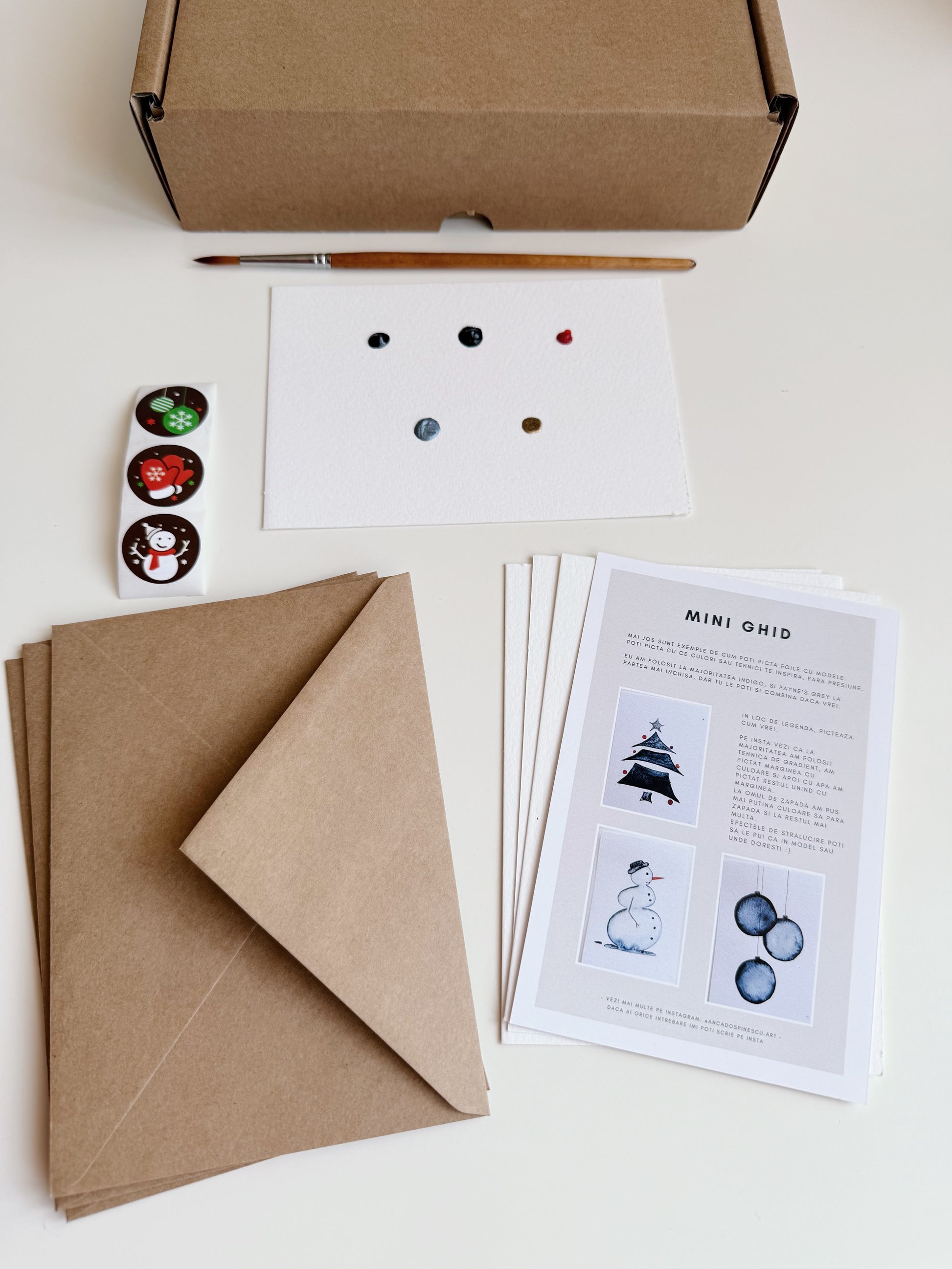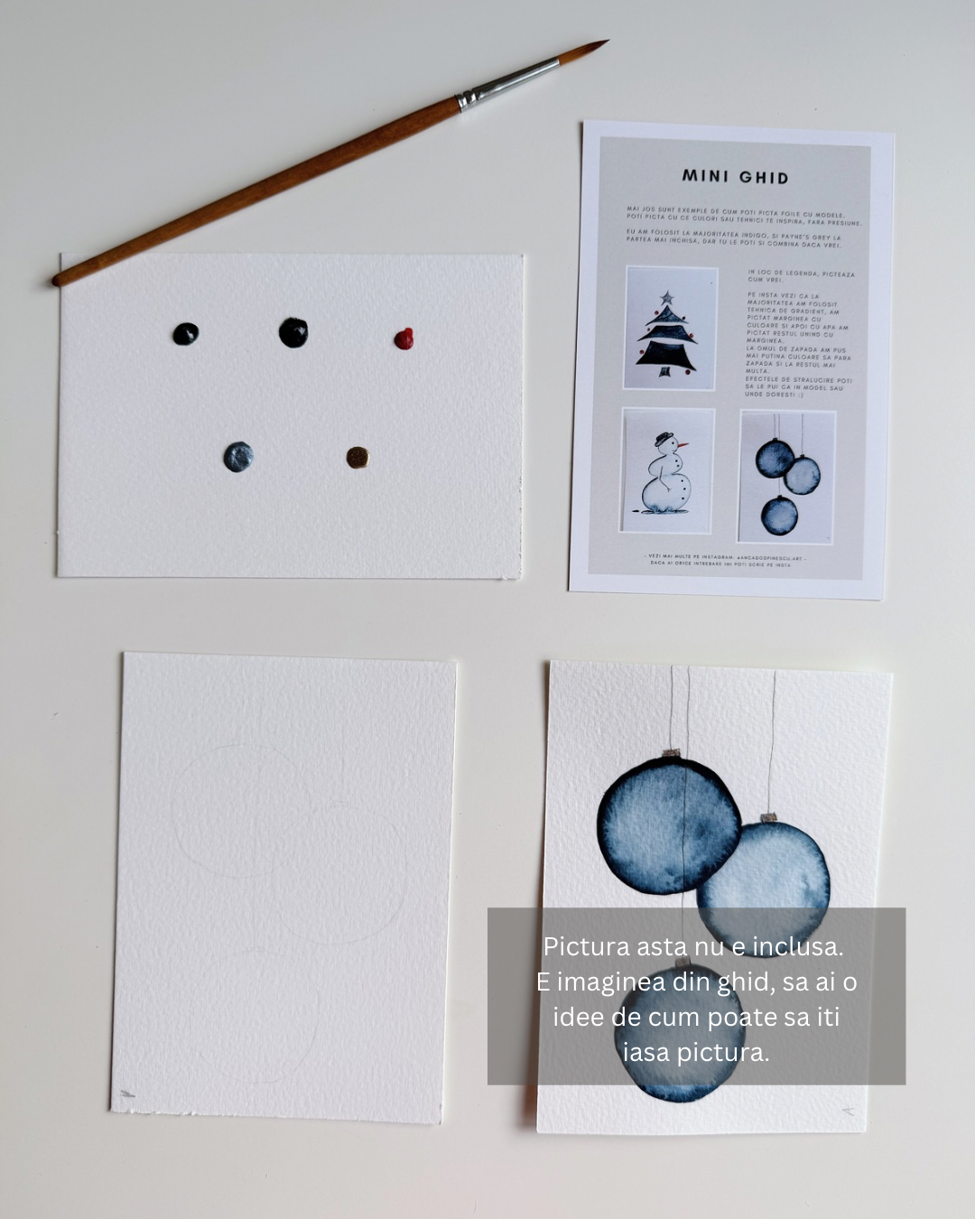 Am creat Setul de pictura 3 Cadouri de Craciun special pentru tine – un pachet de inceput conceput sa te ajute sa faci primii pasi in pictura in acuarela, folosind materiale profesionale si in acelasi timp sa poti si oferi cadou picturile realizate.