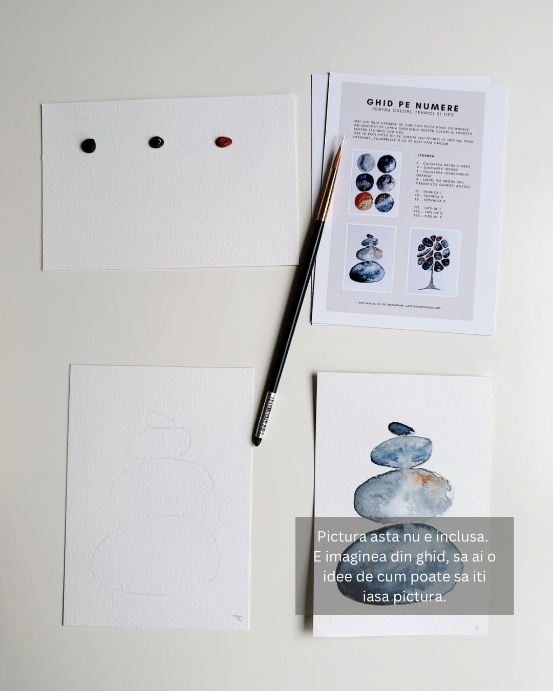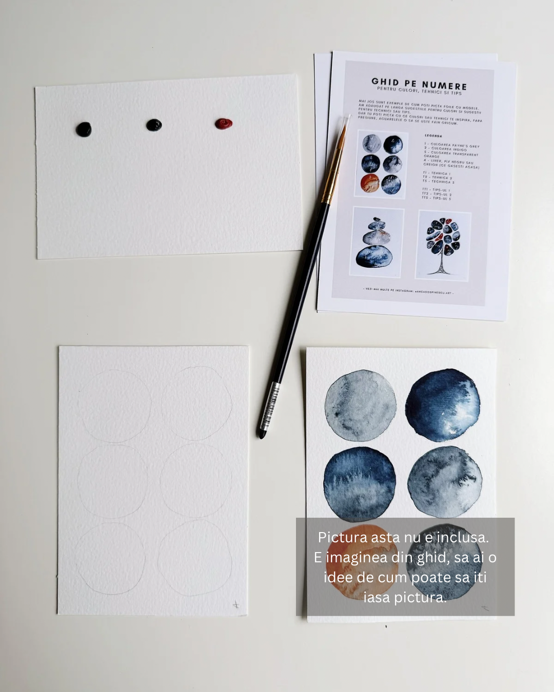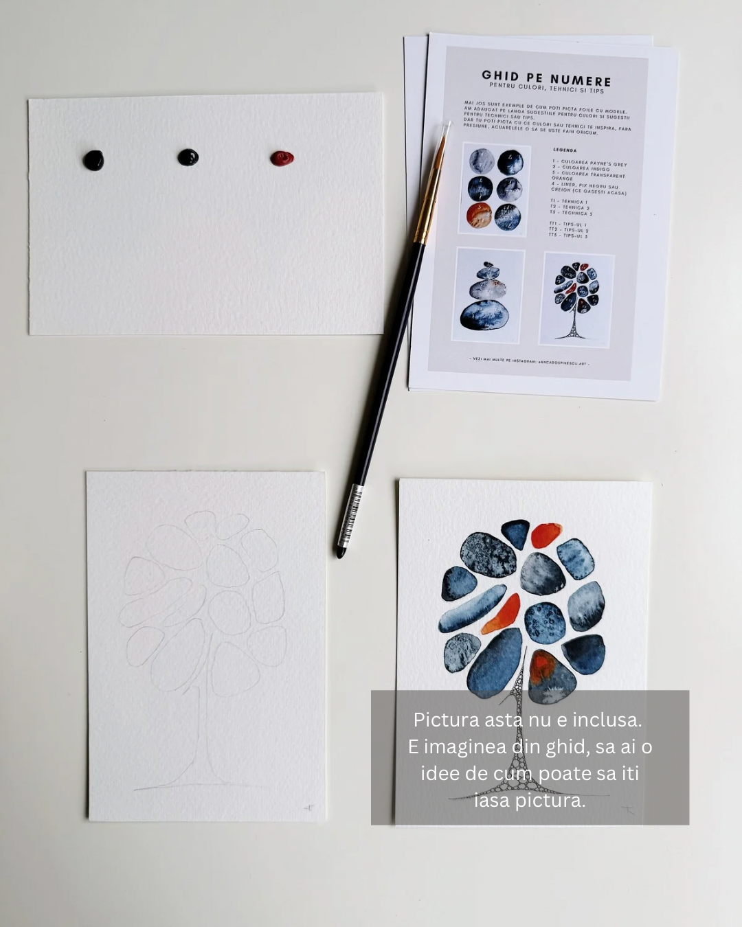 - 1 mini ghid cu instructiuni de pictat pe numere, pentru culori si tehnici (momentan in limba romana)