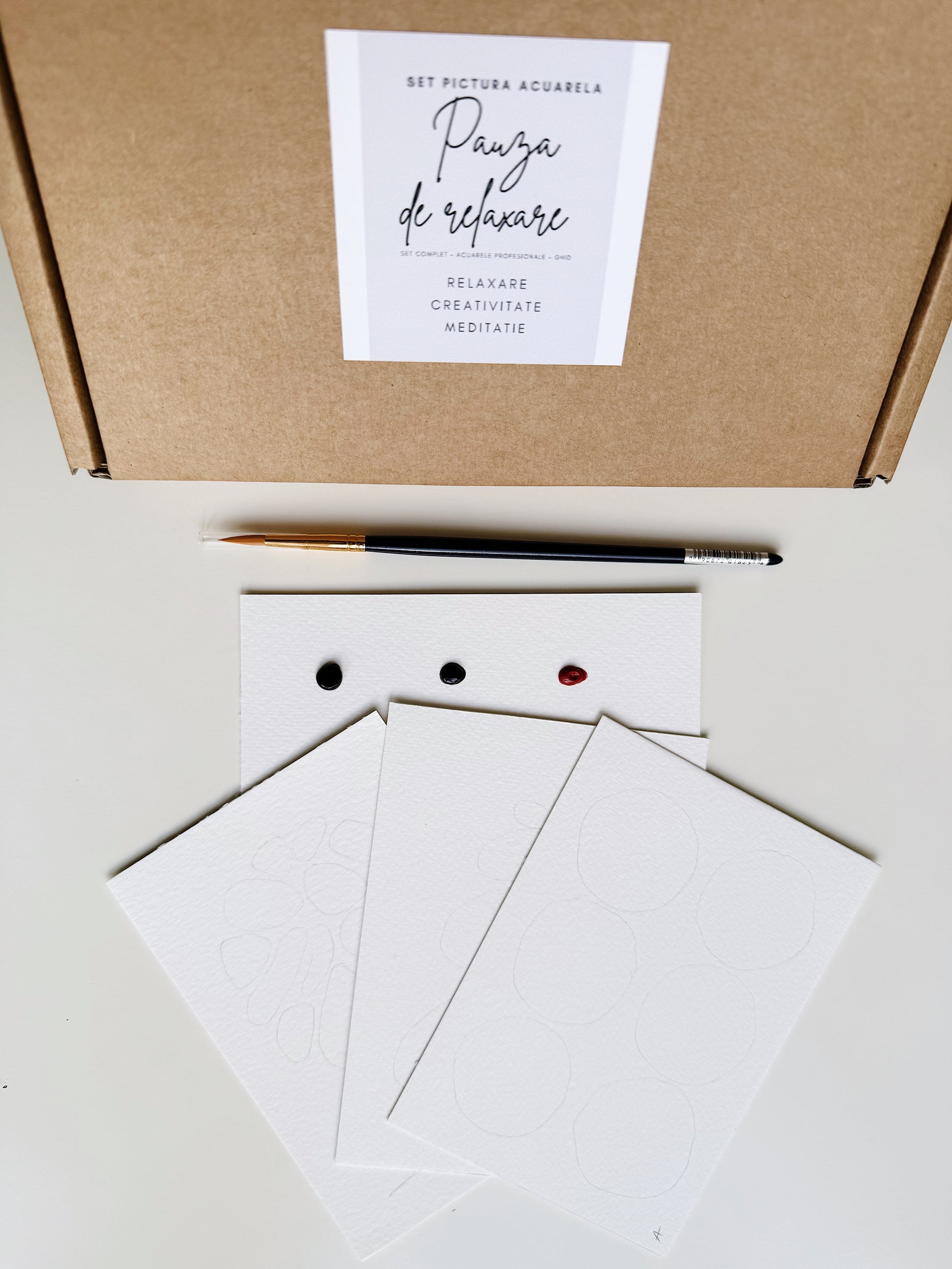 Am creat Setul de pictura Pauza de relaxare special pentru tine – un pachet de inceput conceput sa te ajute sa faci primii pasi in pictura in acuarela, folosind materiale profesionale.