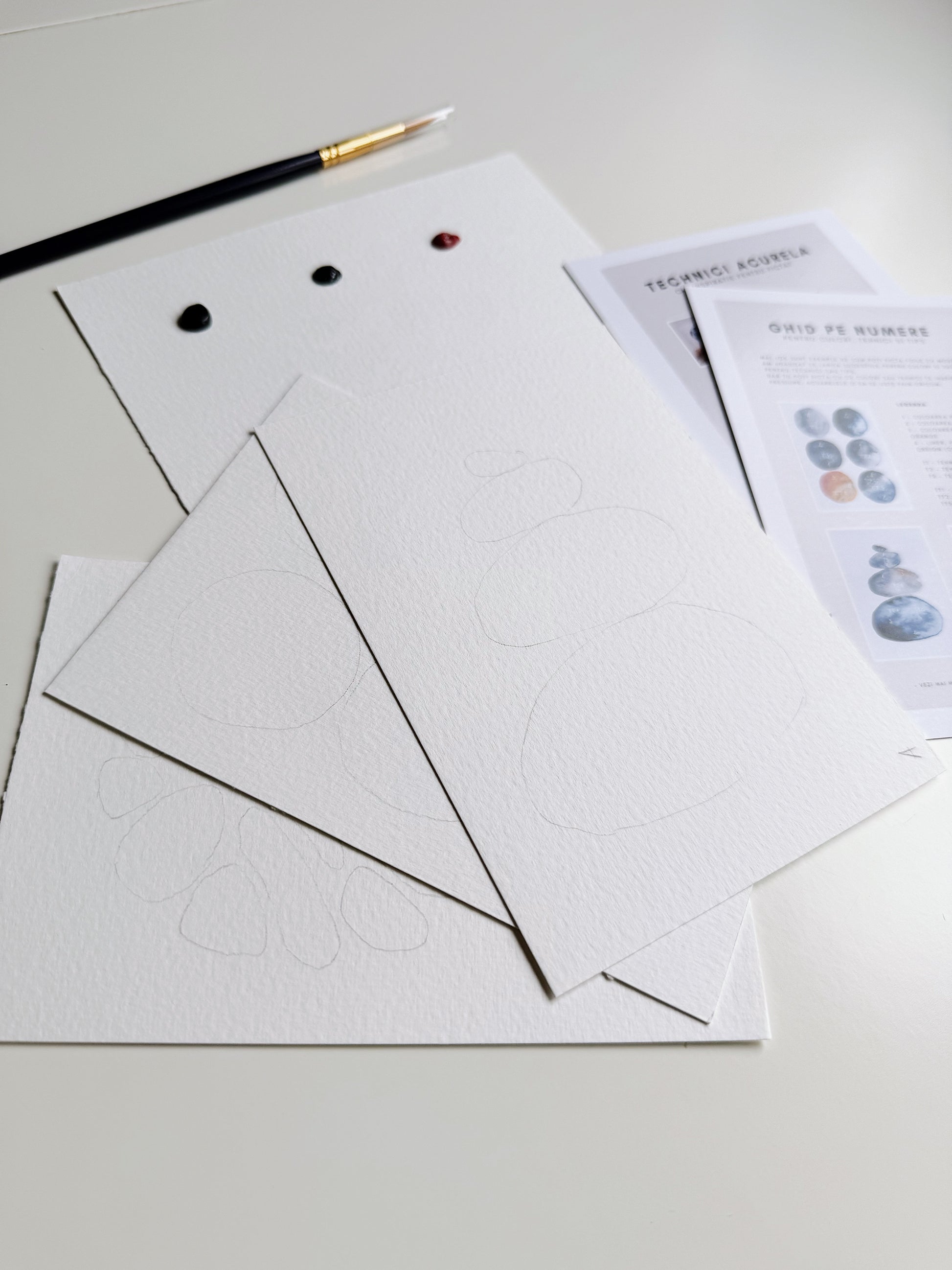 - 3 foi de hartie profesionala pentru acuarela (dimensiune 10x15 cm) cu modele gata de pictat
