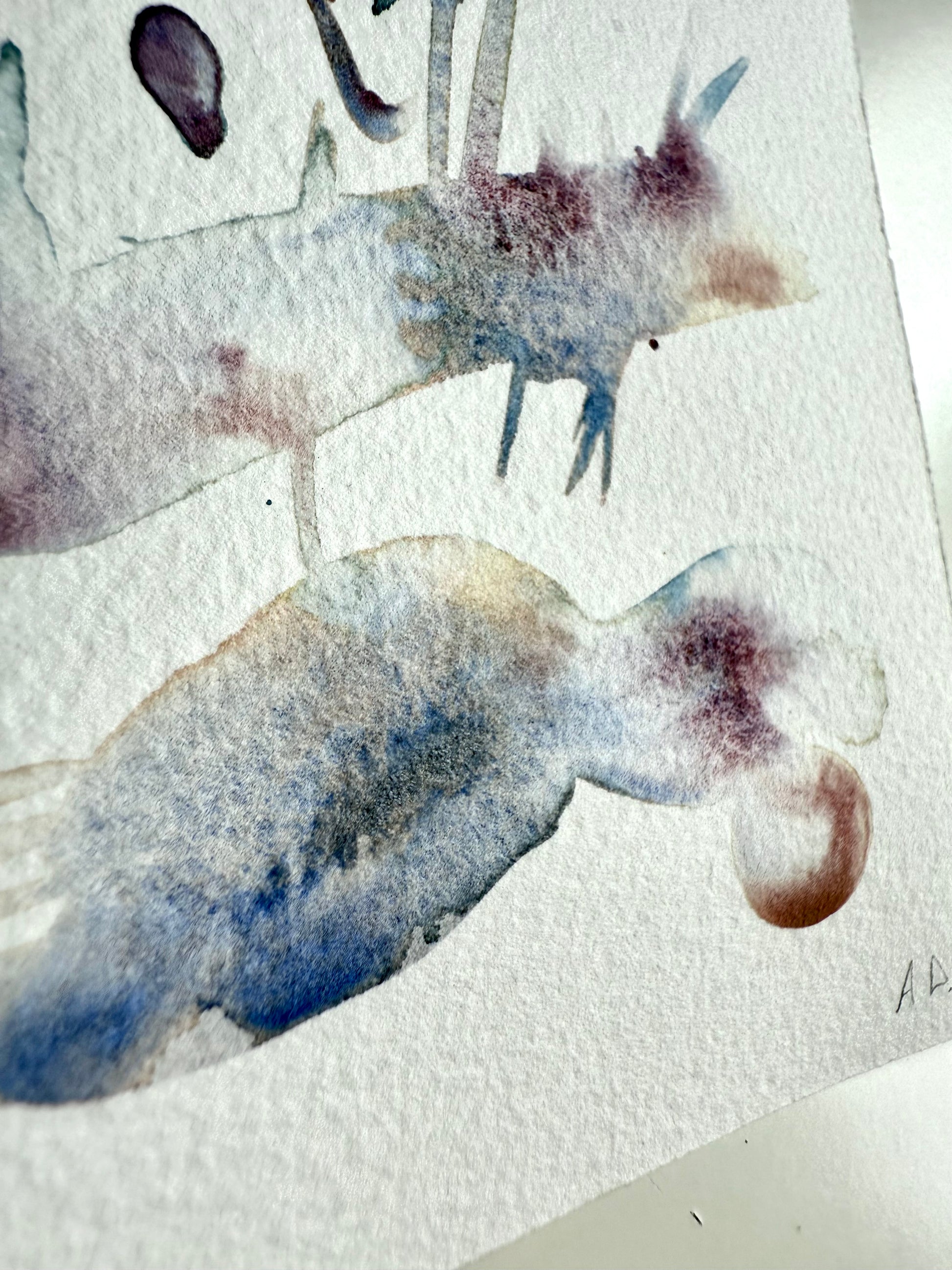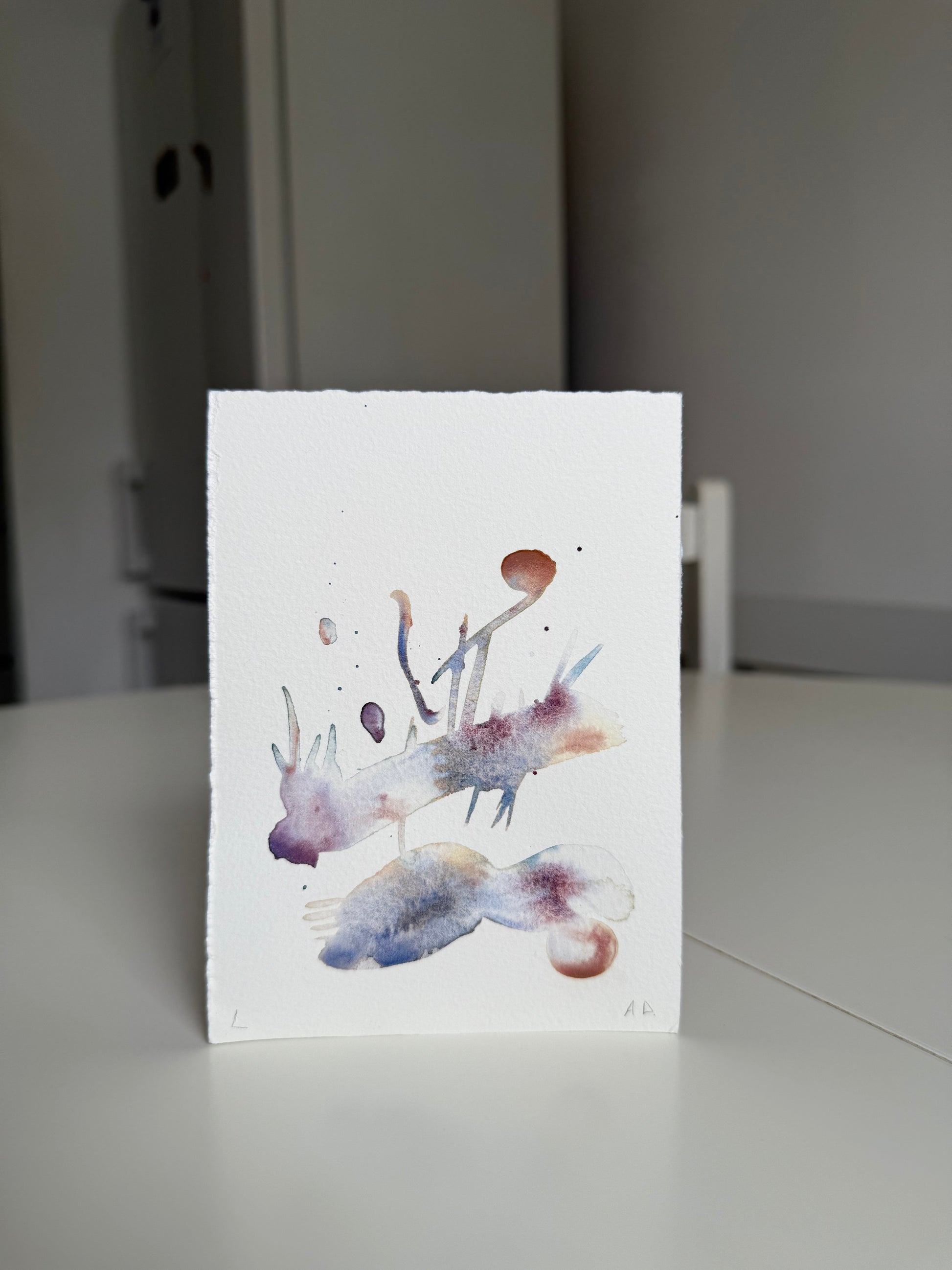 Această dimensiune A6 și "A6-ish" e unul dintre formatele pe care îmi place cel mai mult să lucrez, și de cele mai multe ori îmi plac și rezultatele. E mai ușor să văd imaginea de ansamblu dar și să observ detaliile, cumva simt că am mai mult control asupra a ceea ce fac — deși, sincer, nu prea poți vorbi despre control când lucrezi cu acuarelă. Și niciodată nu rămân fără culoare pregătită. :)