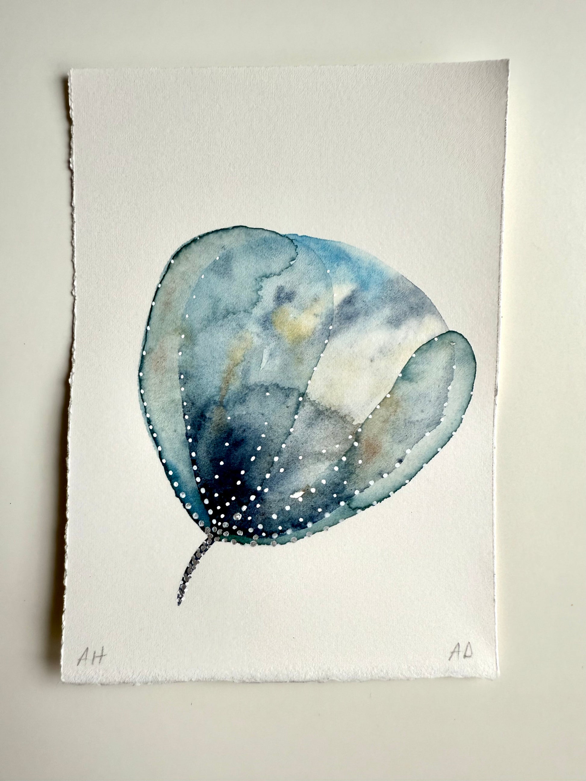 Pictată pe hârtie profesională pentru acuarelă, 300g, textură fina.