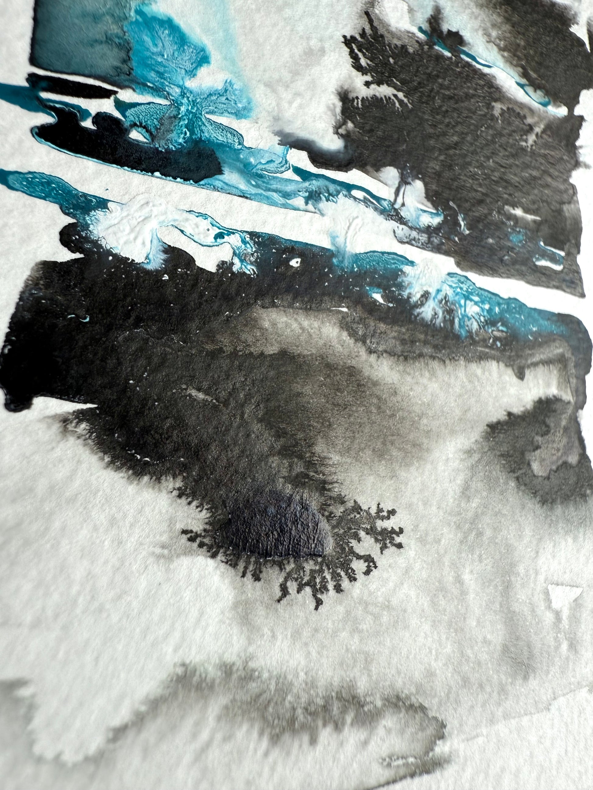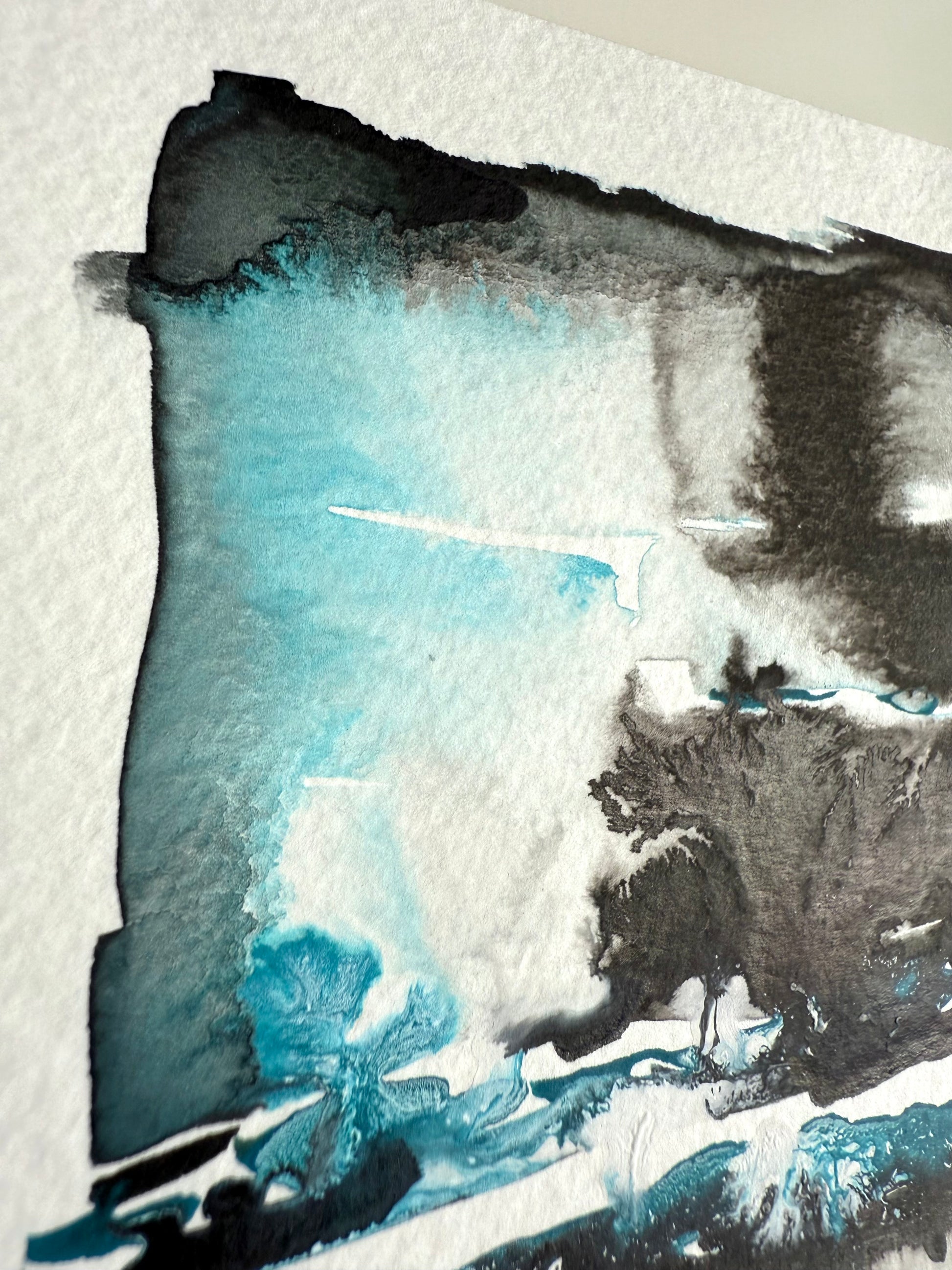 Pictată pe hârtie profesională pentru acuarelă, 300g, textură medie.