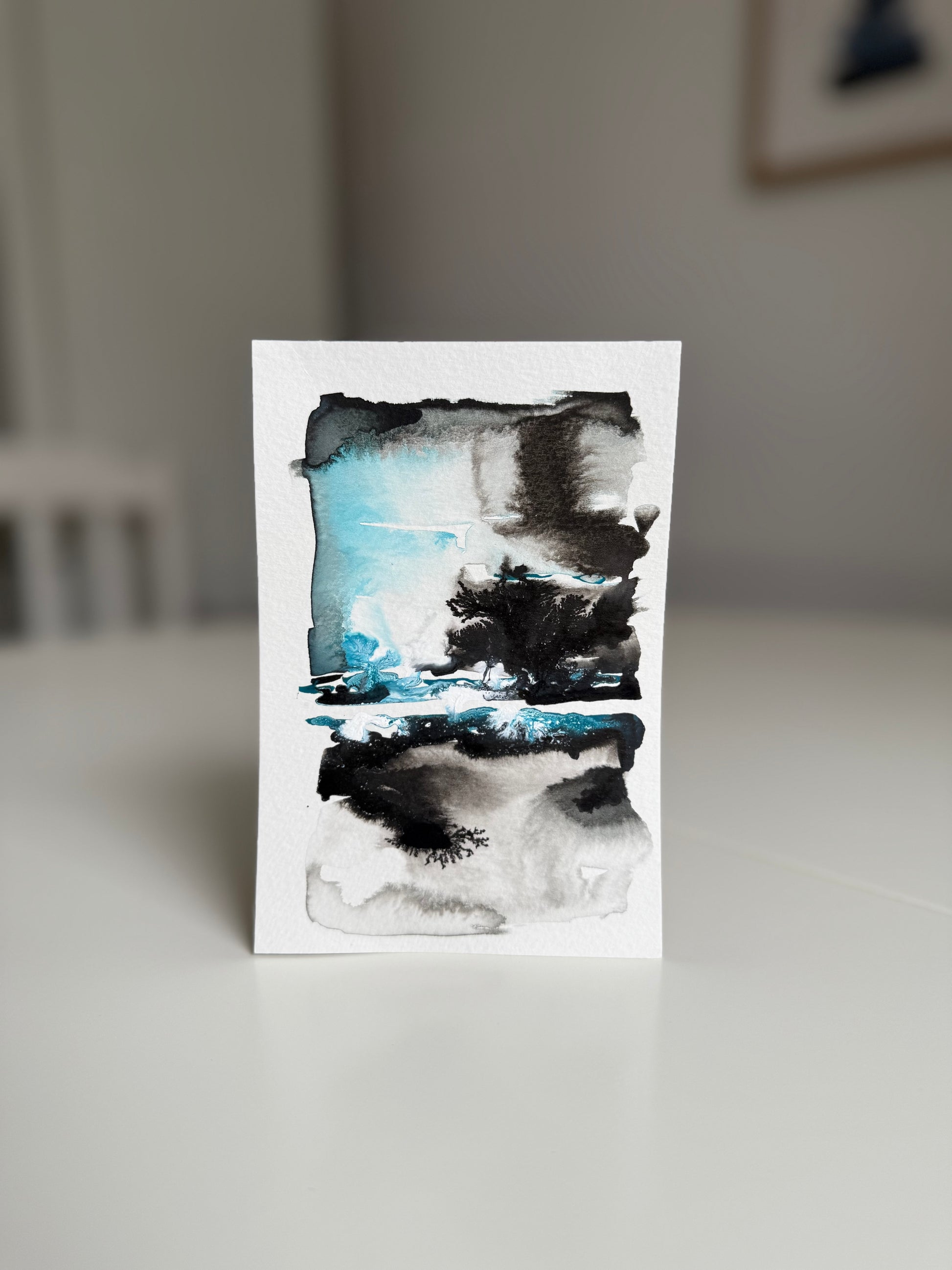 Această dimensiune A6 și "A6-ish" e unul dintre formatele pe care îmi place cel mai mult să lucrez, și de cele mai multe ori îmi plac și rezultatele. E mai ușor să văd imaginea de ansamblu dar și să observ detaliile, cumva simt că am mai mult control asupra a ceea ce fac — deși, sincer, nu prea poți vorbi despre control când lucrezi cu acuarelă. Și niciodată nu rămân fără culoare pregătită. :)