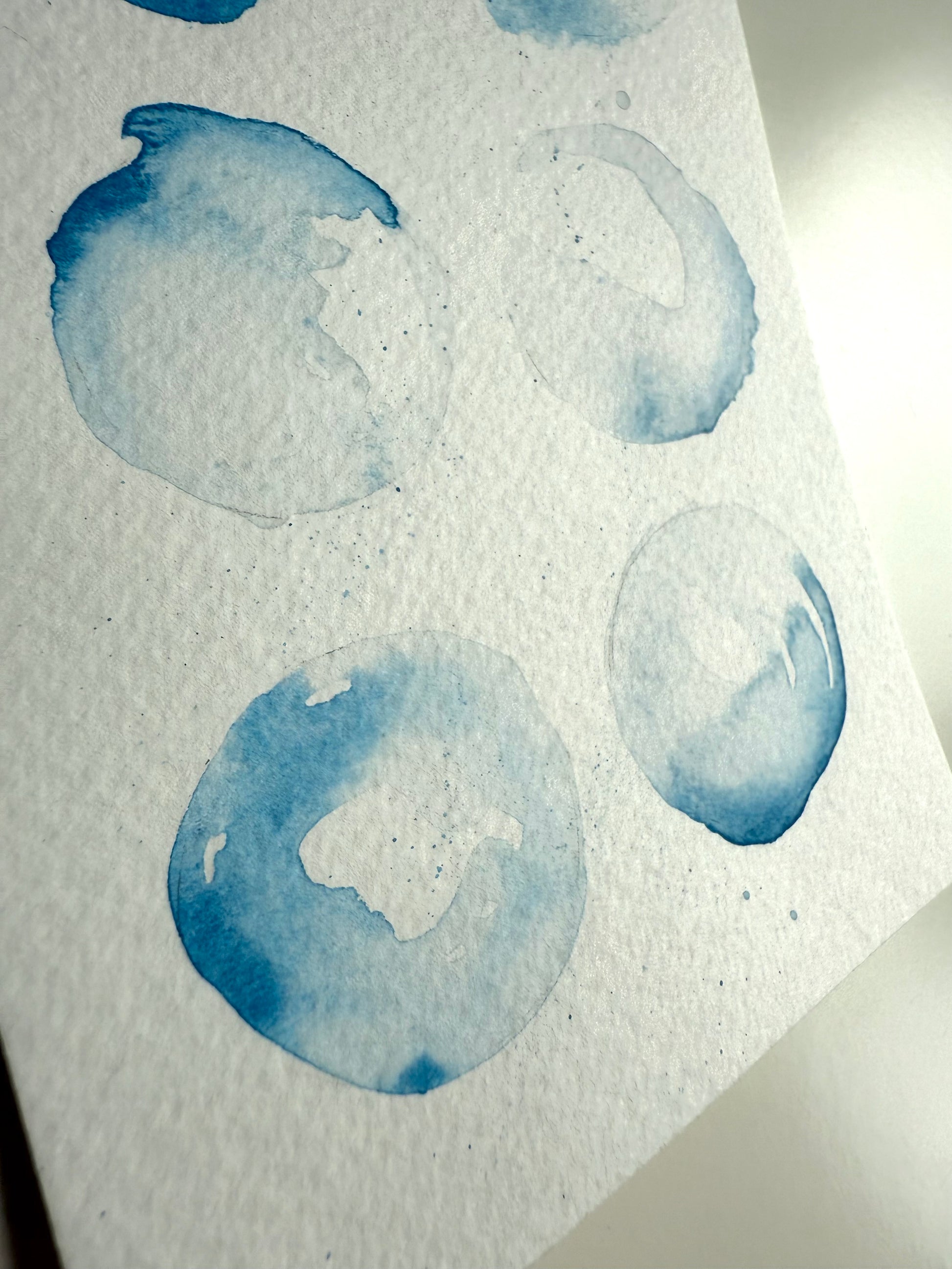 Pictată pe hârtie profesională pentru acuarelă, 300g, textură medie.